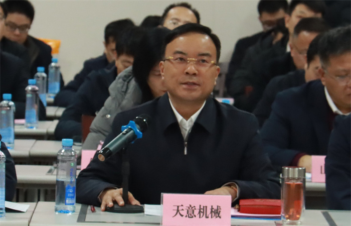 天意机械董事长刘洪彬交流发言,汇报了“十五五”规划的开局之年,天意将坚守主业、聚焦实业,贯彻新发展理念,推进高质量发展,确保开好局、起好步。第一,筑牢装配式建筑装备主业发展根基。2026年,天意将聚焦模块化建筑技术和装配式装修技术研发与应用,开发适配“好房子”建设需求的装配式建筑装备新产品。第二,实现新能源产业新突破加强对外合作,创新合作模式,以股权换发展、以合作促提升,与洛阳广源精密制造有限公司、金洪汽车科技集团股份有限公司等宁德时代配套体系企业深度协同,共同打造宁德时代供应链产业园。第三,构筑国际化发展新动能。2026年,天意将持续加大国际市场开拓力度,重点布局南美、北非等新兴市场,加快推进海外仓建设、设立海外分公司,优化国际贸易布局,力争全年出口额提升30%。2026年集团计划收入达到13亿元,2030年实现收入50亿元。打造出具有国内知名度的自主品牌。铝型材业务从建筑型材向工业型材转型。未来,天意将坚定不移地贯彻落实市委、市政府的工作部署,充分发挥自身优势,勇挑重担,为全市经济高质量发展贡献天意力量!