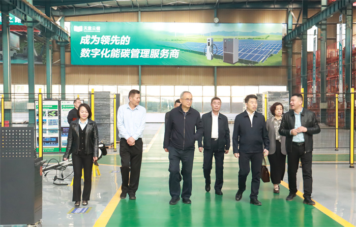 于雷一行参观了天意工业互联网展示中心、生态党建馆、光伏清扫机器人展区、储能设备展区。