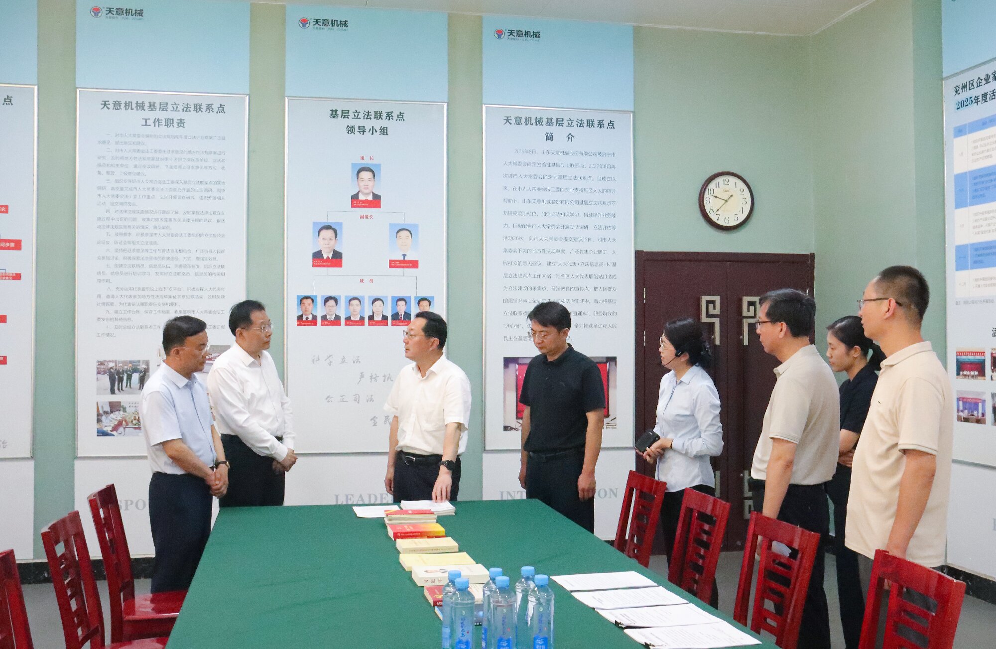 5月21日,济宁市人大常委会副主任刘辉率队赴天意机械基层立法联系点开展专题调研,实地走访天云工业互联网平台展厅、立法联系点办公区及智能光伏清扫机器人展示区。市人大常委会法制工委主任温永忠、区人大常委会副主任岳峰等参与调研,天意机械董事长刘洪彬陪同调研。